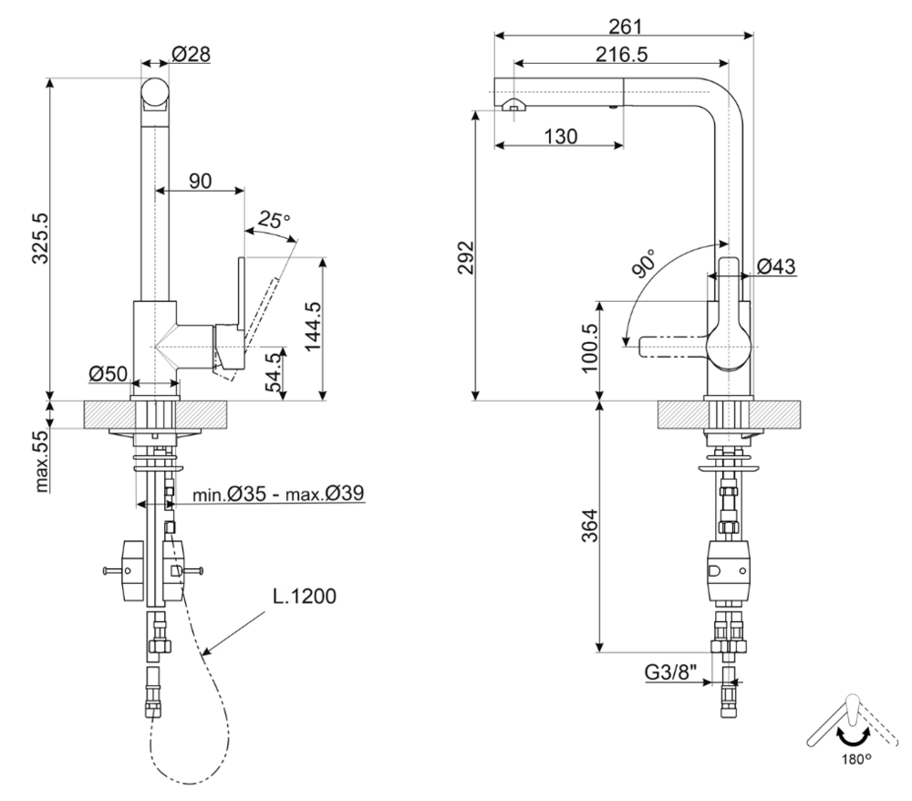 смеситель для кухни, латунь, высокий поворотный выдвижной излив, черный