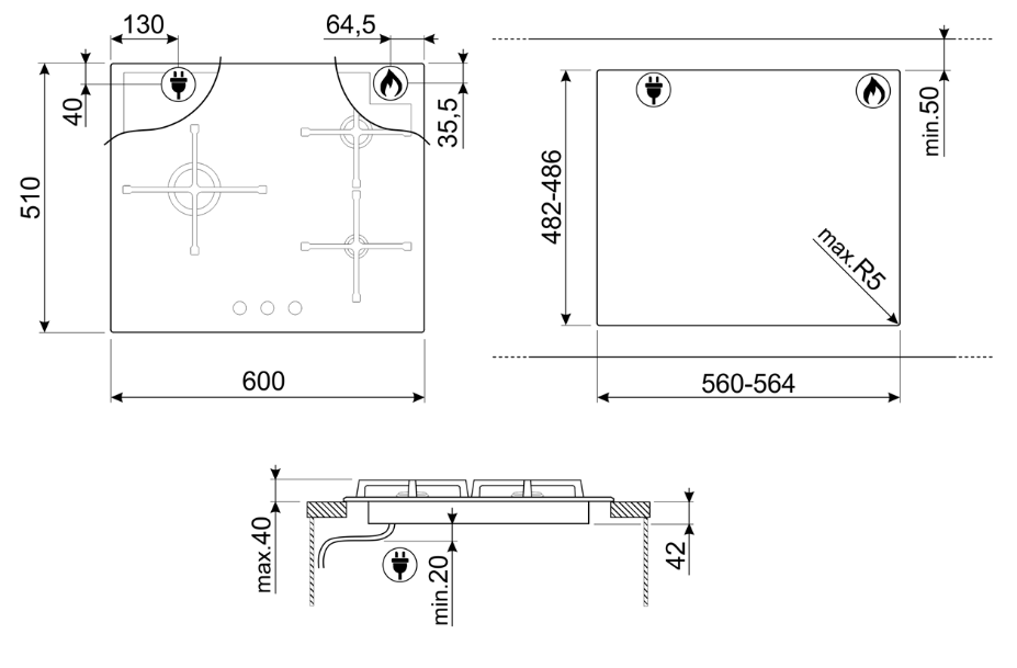 Smeg PV163B3 Газовая поверхность