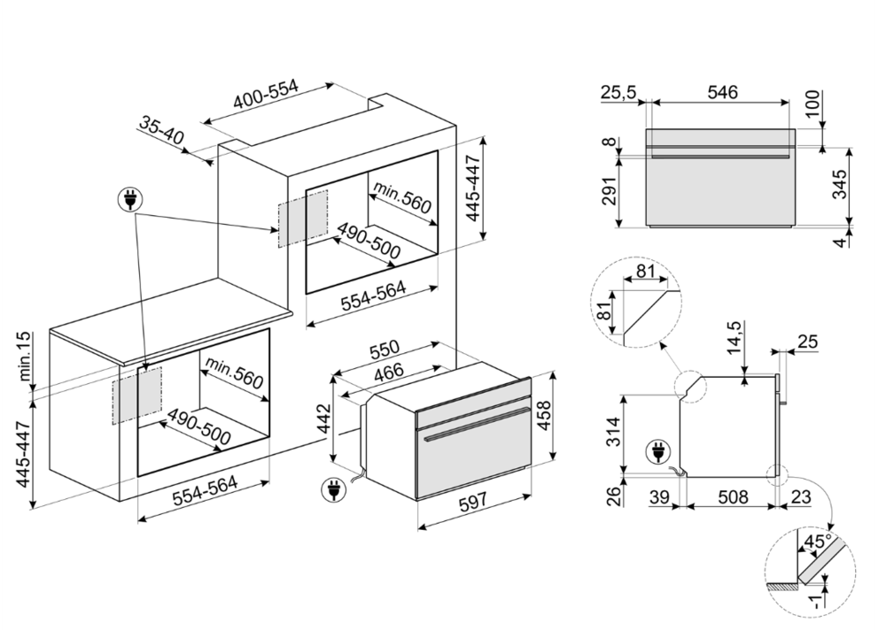 Ширина корпуса электроприбора. Особенно важно точно знать точную допустимую ширину для встраиваемой техники.