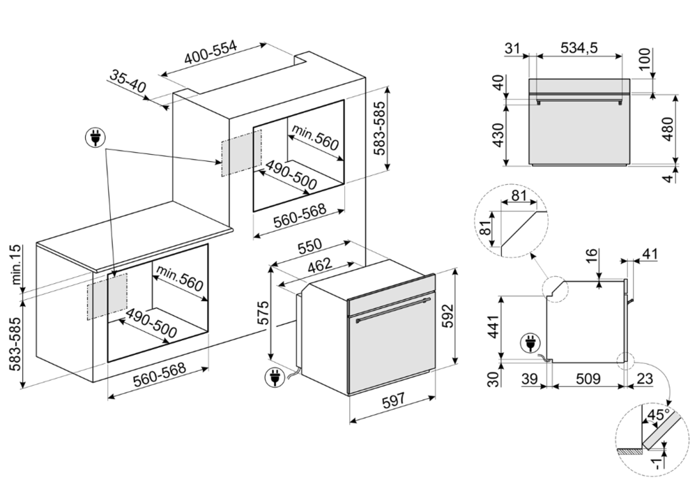 Ширина корпуса электроприбора. Особенно важно точно знать точную допустимую ширину для встраиваемой техники.