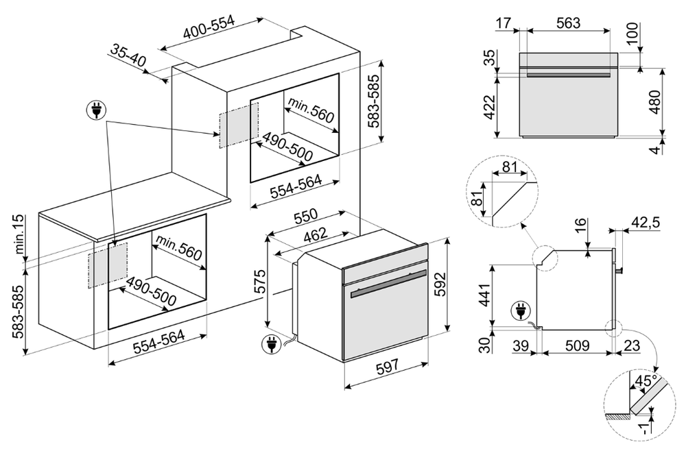 Ширина корпуса электроприбора. Особенно важно точно знать точную допустимую ширину для встраиваемой техники.