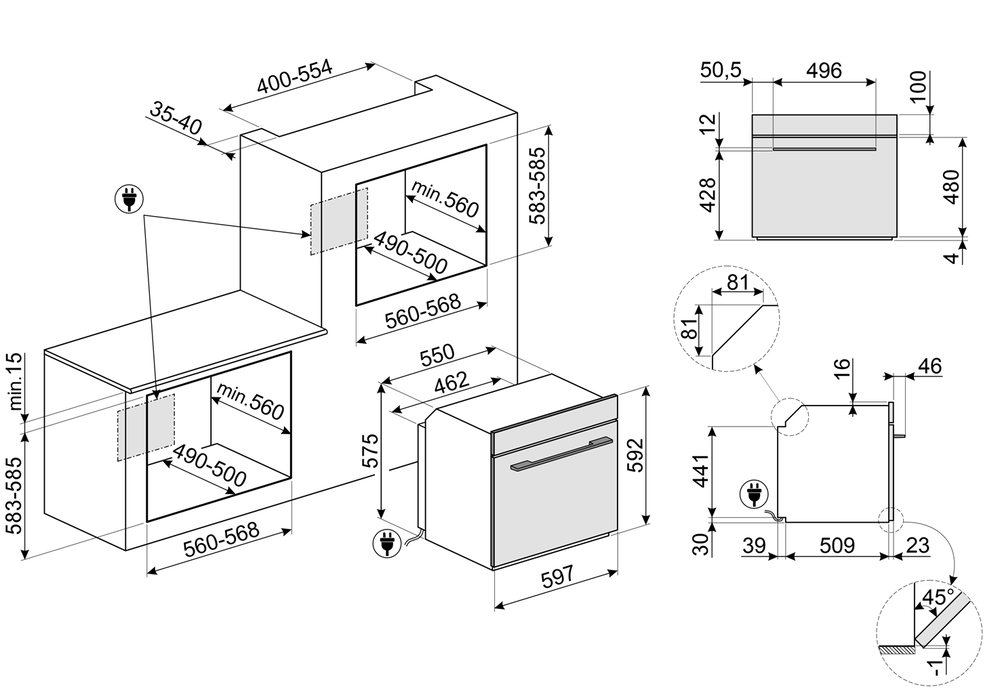 Ширина корпуса электроприбора. Особенно важно точно знать точную допустимую ширину для встраиваемой техники.