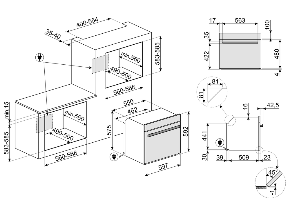 Ширина корпуса электроприбора. Особенно важно точно знать точную допустимую ширину для встраиваемой техники.