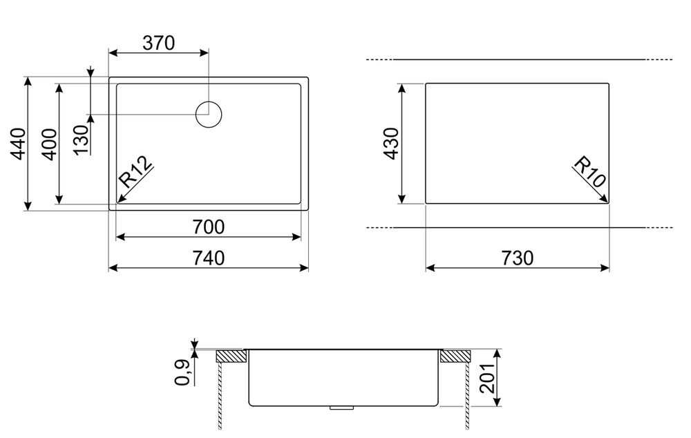 мойка, нержавеющая сталь, 740х440 мм, нержавеющая сталь матовая