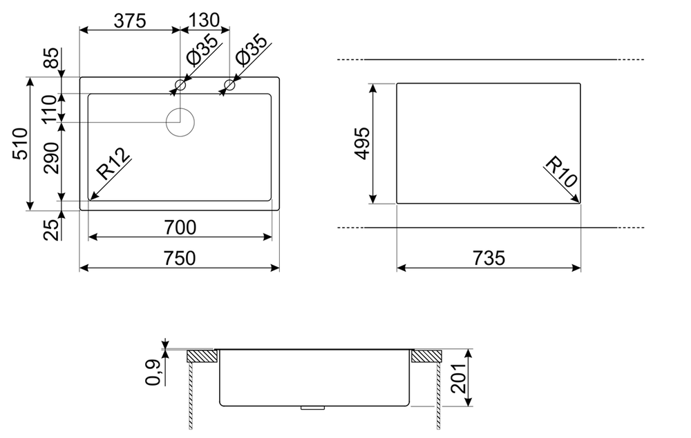 мойка, нержавеющая сталь, 750х510 мм, нержавеющая сталь матовая