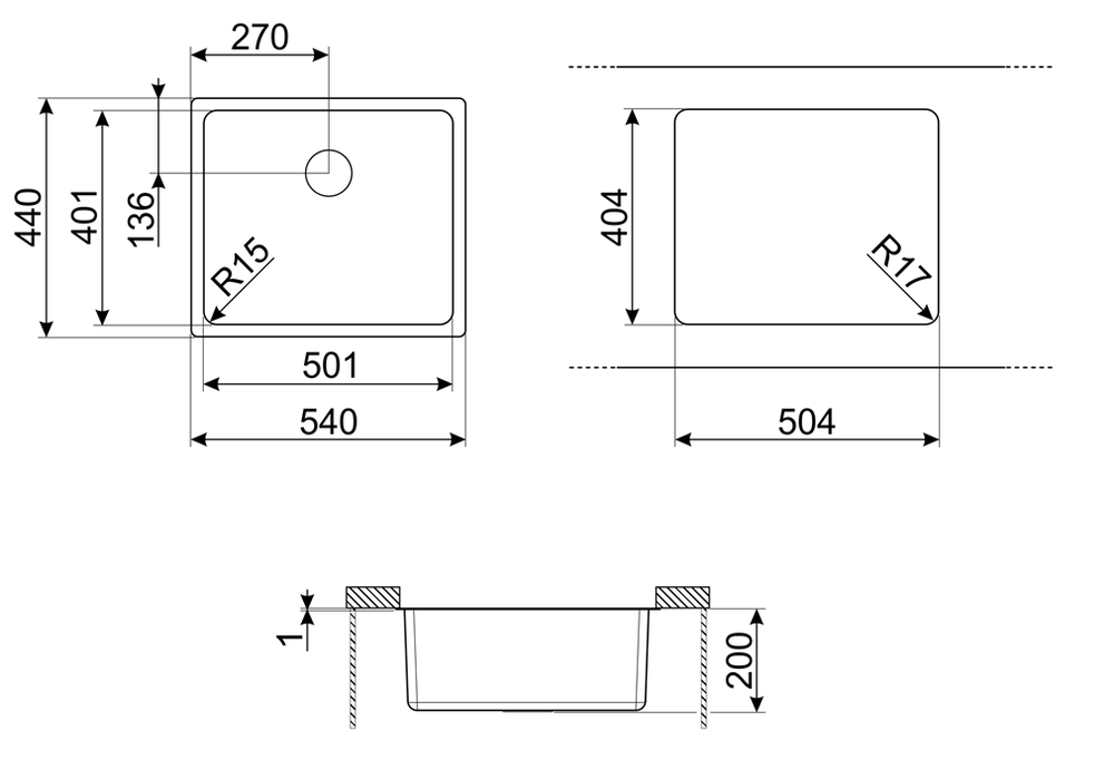 Расстояние от дна до верхней кромки чаши мойки. Оптимальная глубина — 15-18 см. Чем глубже мойка, тем меньше брызг попадет наружу.