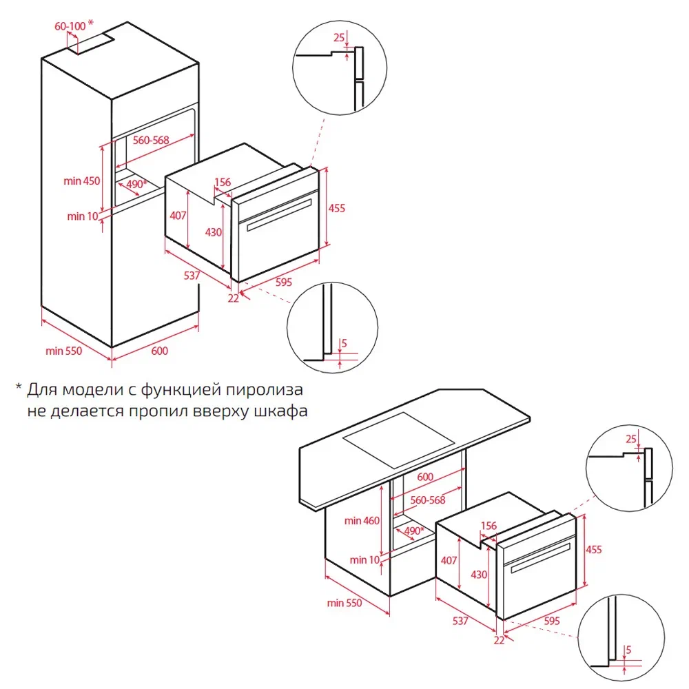 Ширина корпуса электроприбора. Особенно важно точно знать точную допустимую ширину для встраиваемой техники.