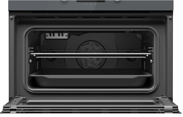 Предполагает наличие встроенного вентилятора, который обеспечивает равномерное запекание благодаря непрерывной циркуляции горячего воздуха.