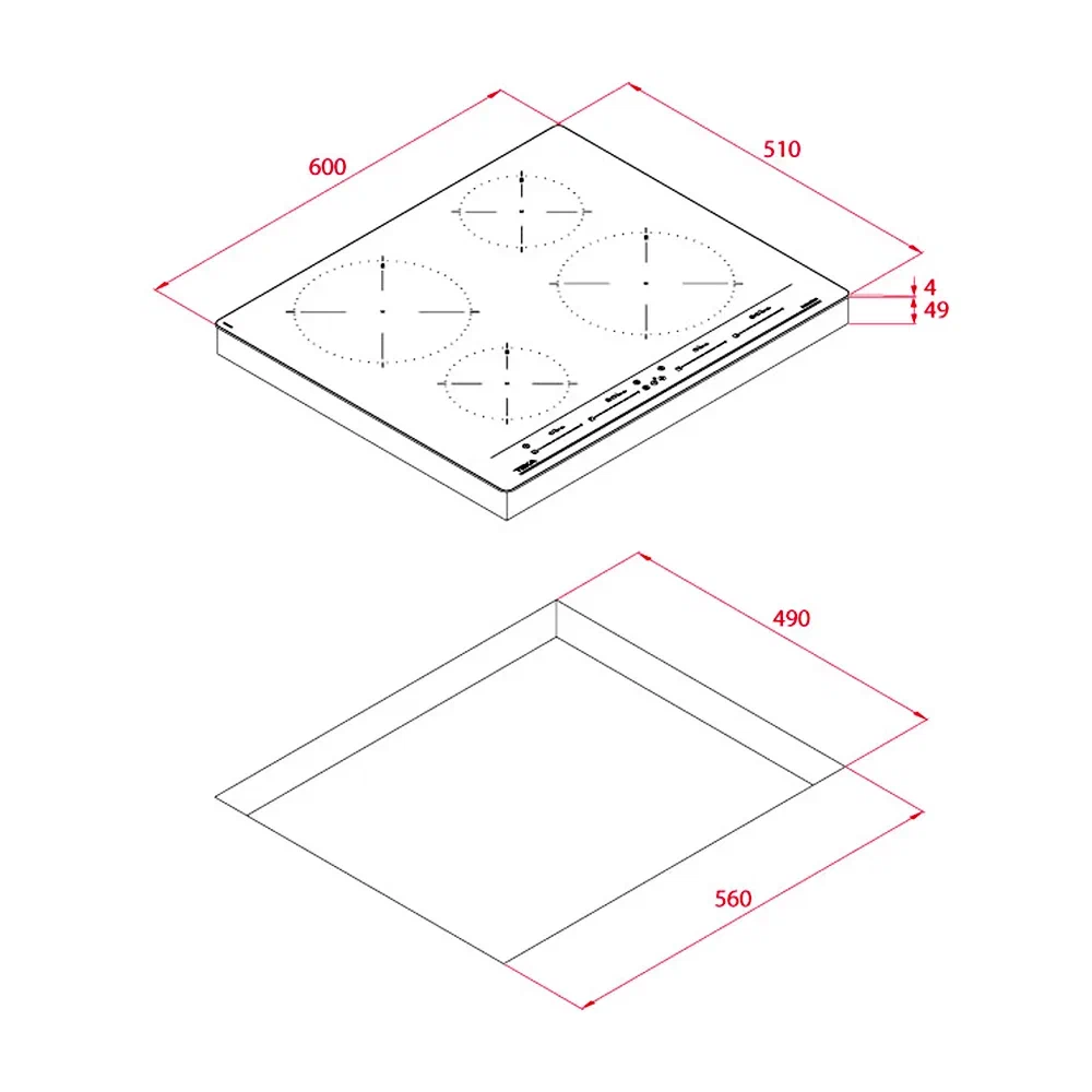 поверхность варочная стеклокерамическая индукционная, 60 см, черный, передний край скошенный