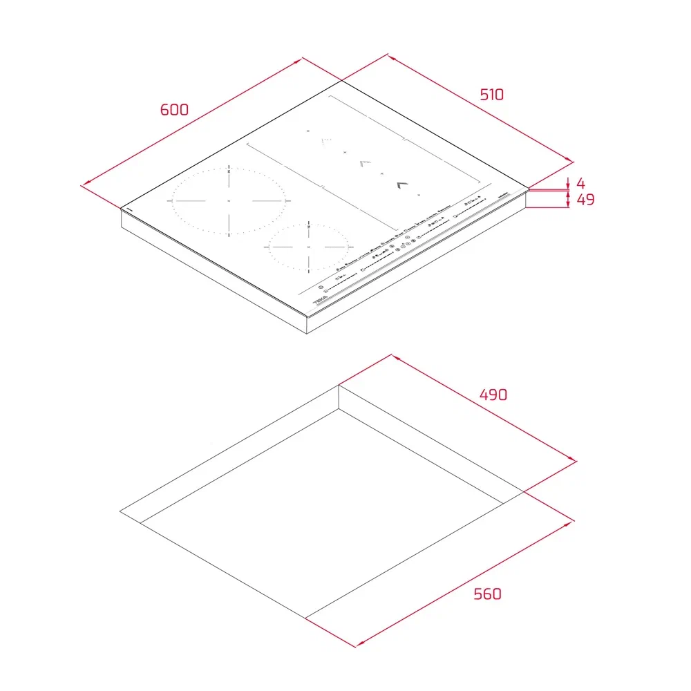 поверхность варочная стеклокерамическая индукционная, 60 см, черный, передний край скошенный