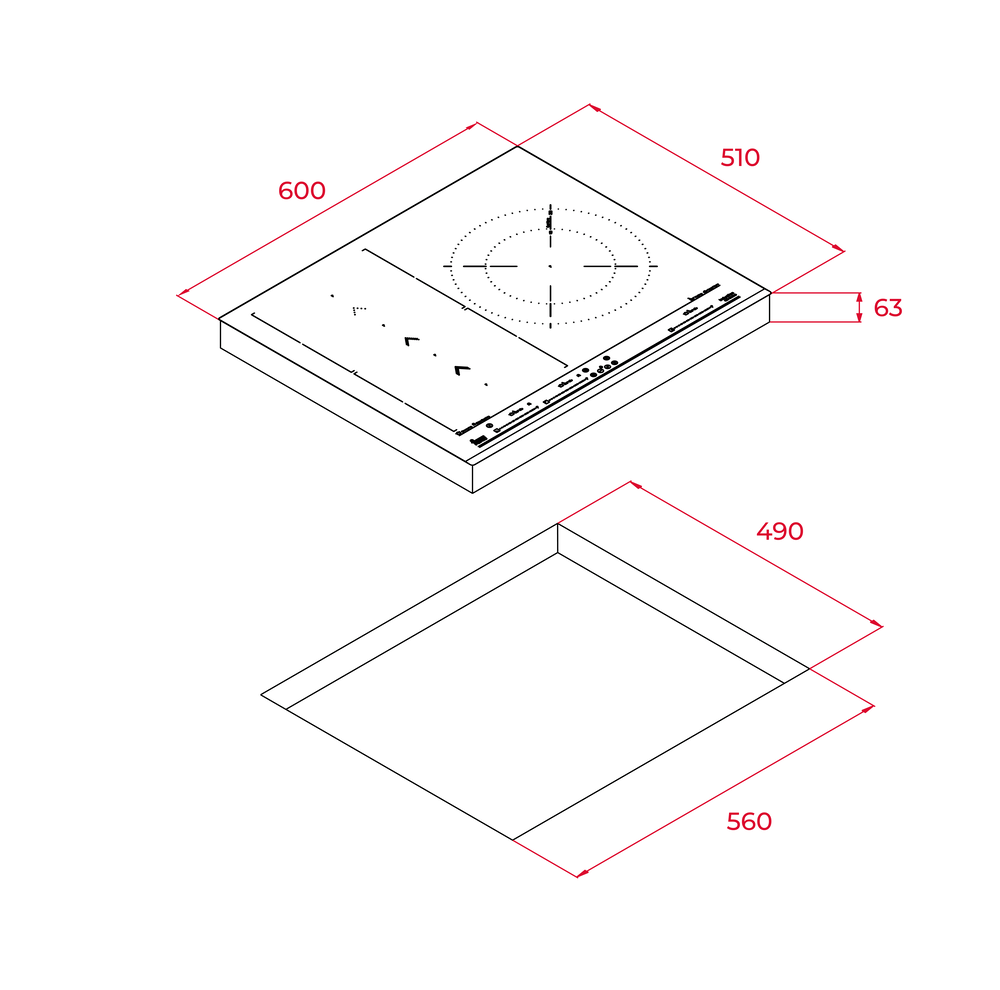 поверхность варочная стеклокерамическая индукционная, 60 см, черный, передний край скошенный