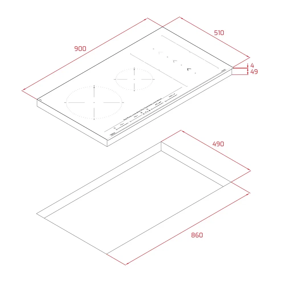 поверхность варочная стеклокерамическая индукционная, 90 см, черный, передний край скошенный