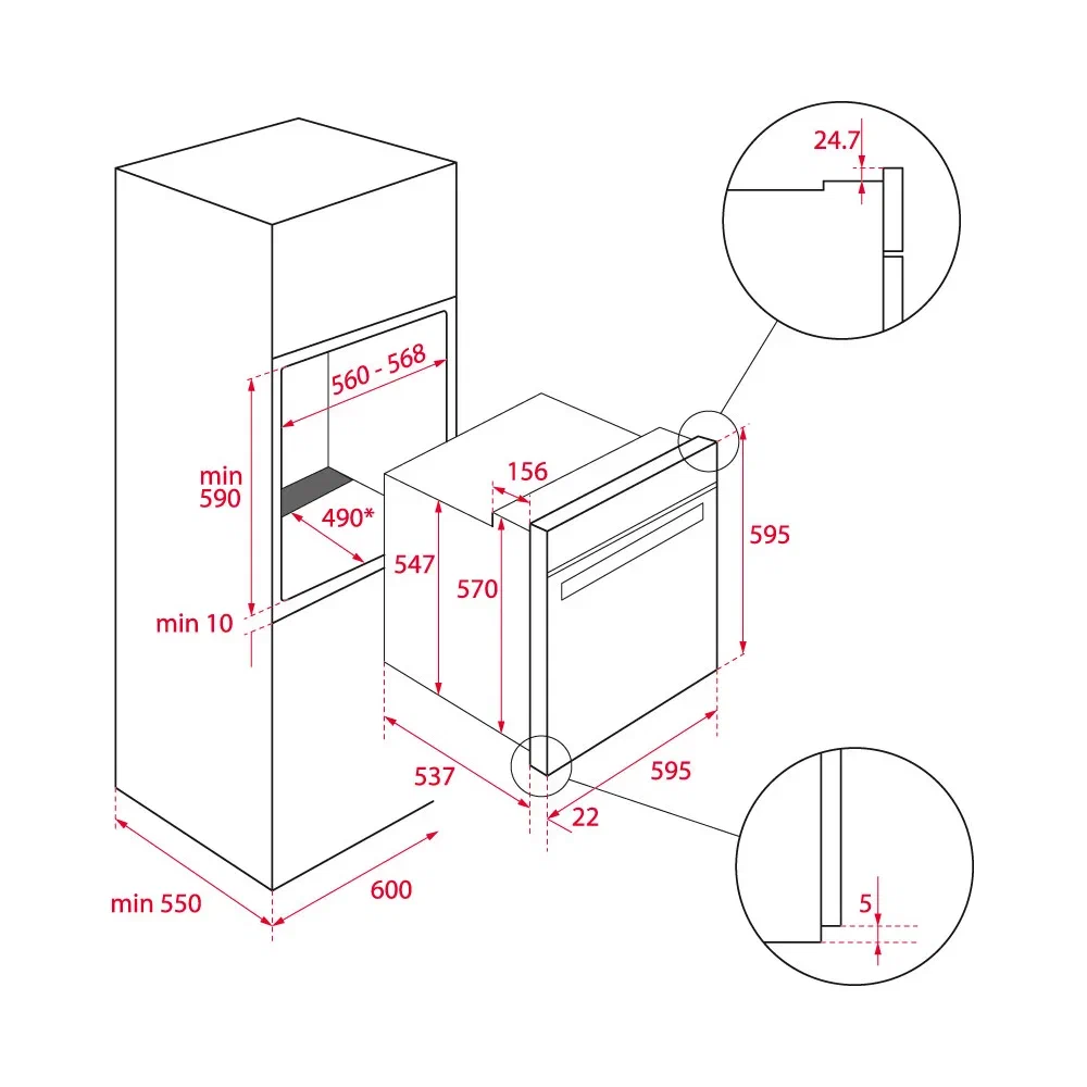 Ширина корпуса электроприбора. Особенно важно точно знать точную допустимую ширину для встраиваемой техники.
