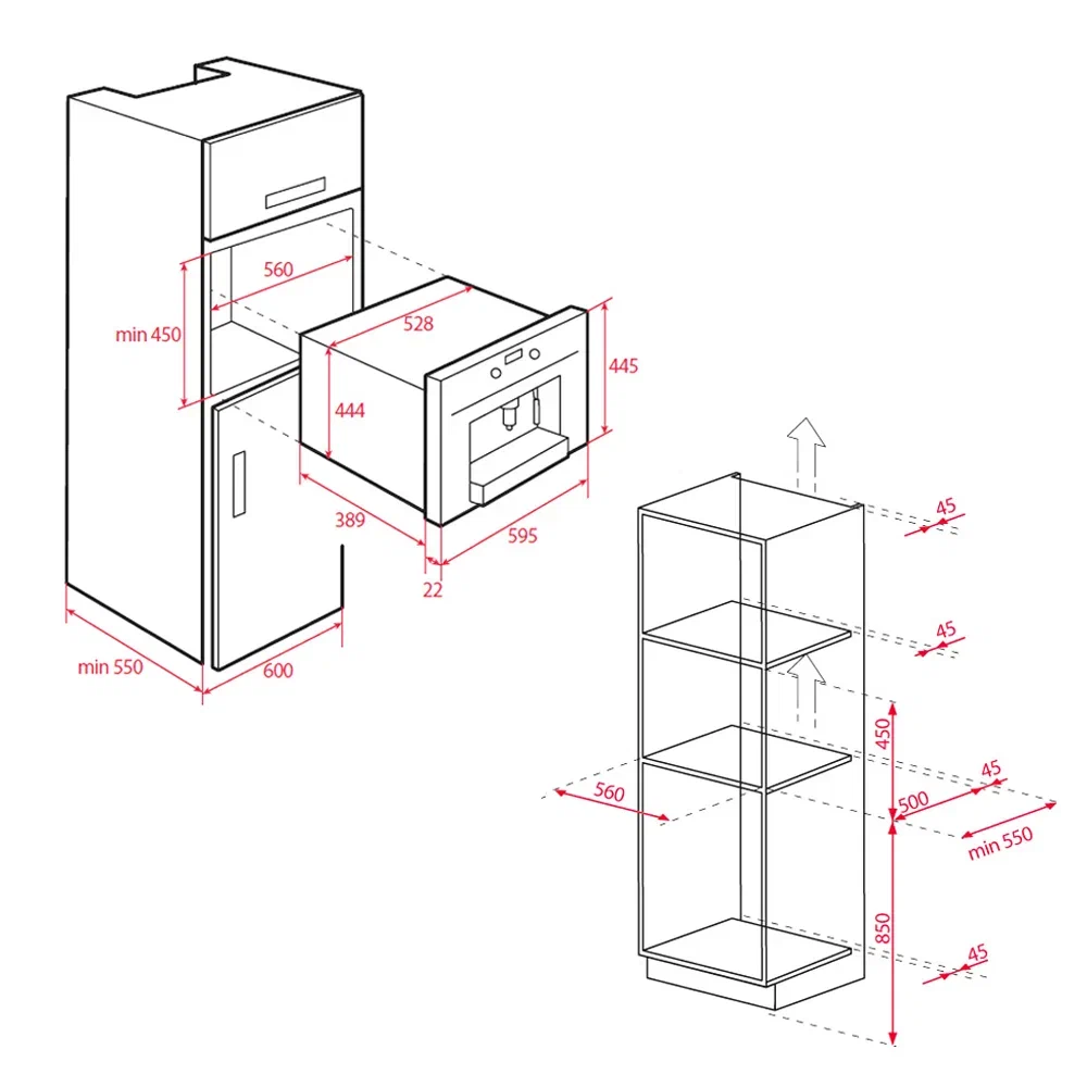 кофемашина встраиваемая, 59,5х41,2х45,5 см, серый пар
