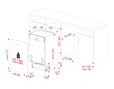 машина посудомоечная встраиваемая, 45 см, 10 комплектов