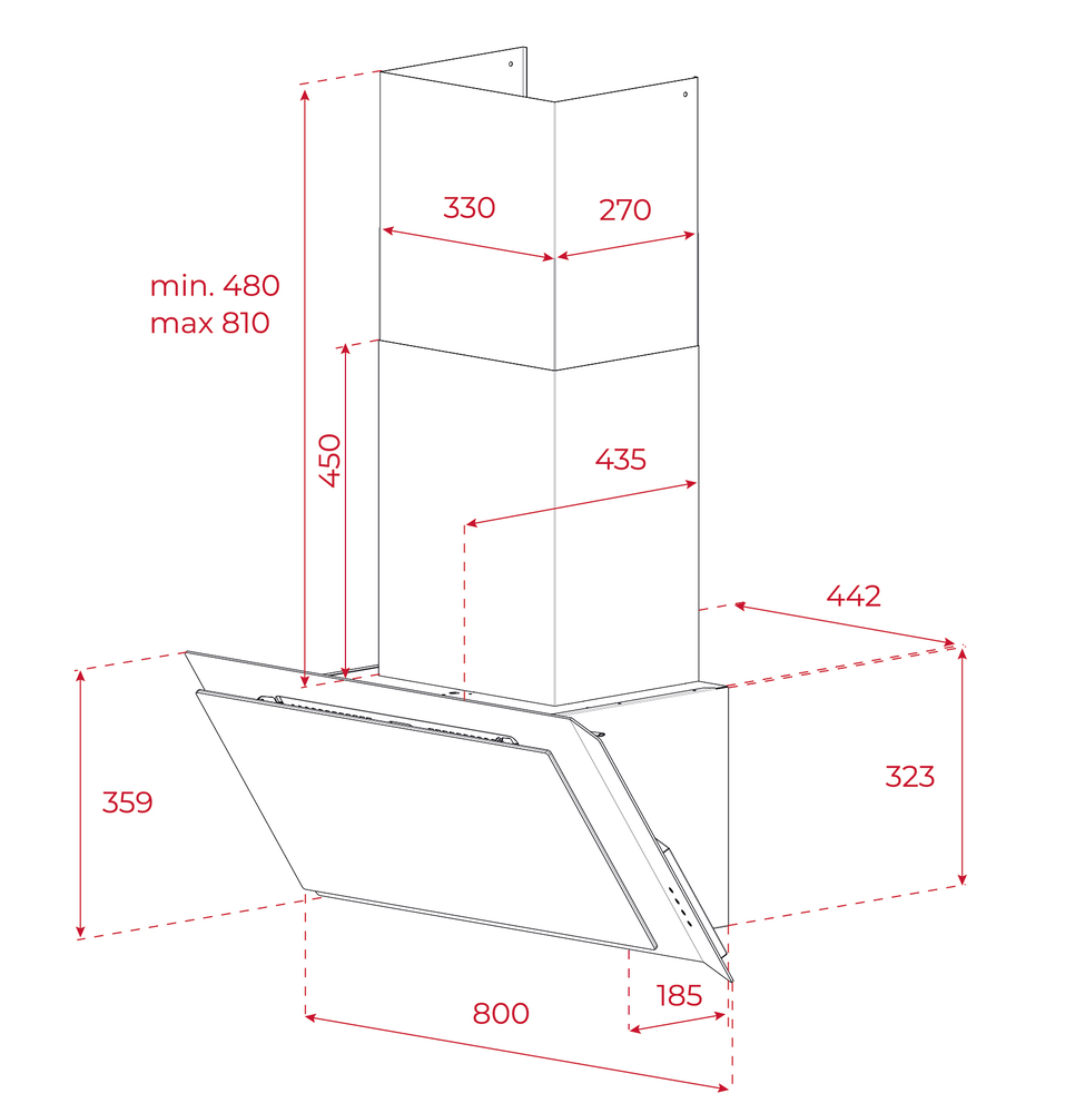 вытяжка наклонная, 80 см, 726 м3/ час, черный матовый