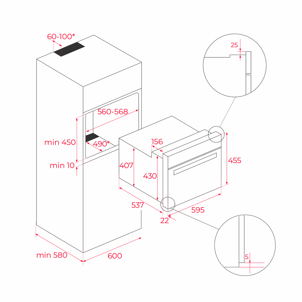 Ширина корпуса электроприбора. Особенно важно точно знать точную допустимую ширину для встраиваемой техники.
