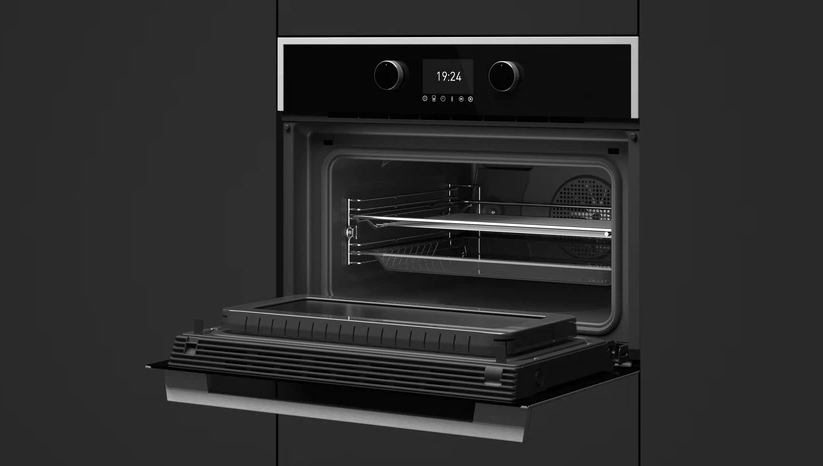 шкаф духовой электрический компактный с функцией СВЧ, 60 см, черное стекло/нержавеющая сталь