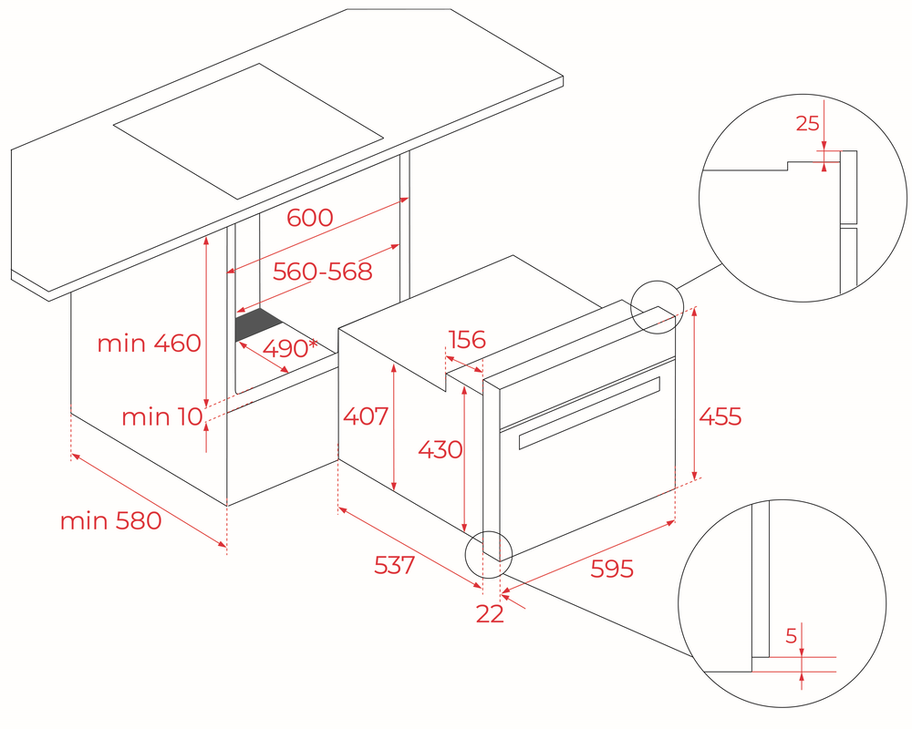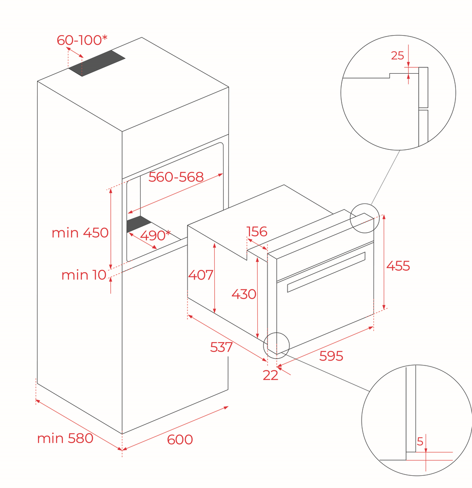 Ширина корпуса электроприбора. Особенно важно точно знать точную допустимую ширину для встраиваемой техники.