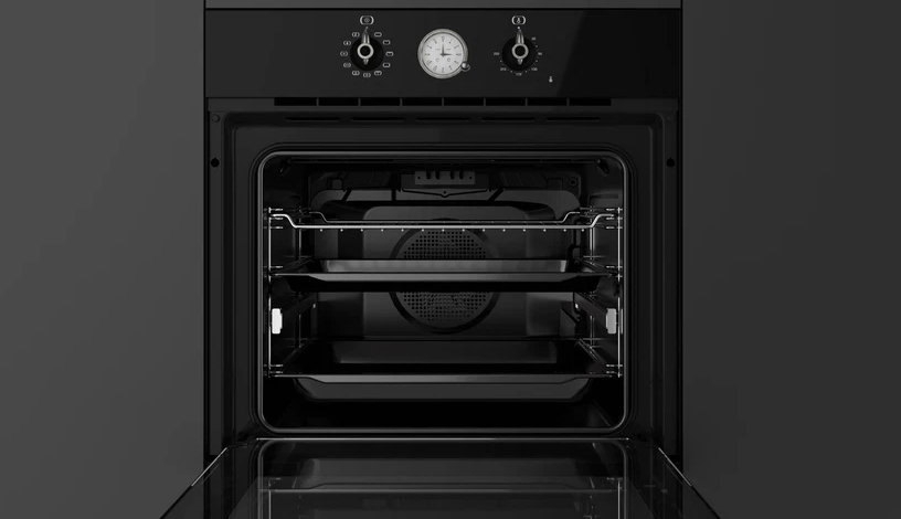 Предполагает наличие встроенного вентилятора, который обеспечивает равномерное запекание благодаря непрерывной циркуляции горячего воздуха.