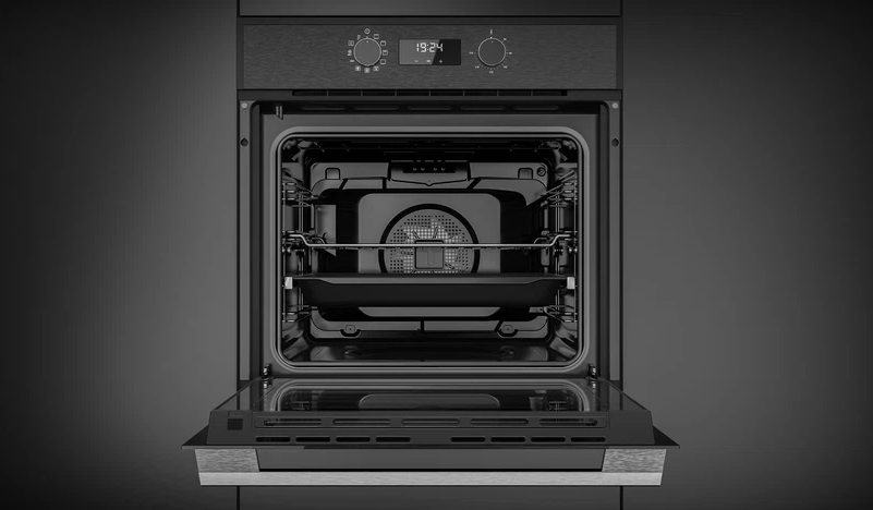 Предполагает наличие встроенного вентилятора, который обеспечивает равномерное запекание благодаря непрерывной циркуляции горячего воздуха.