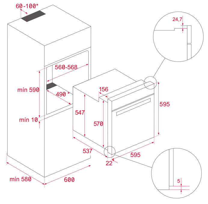 Ширина корпуса электроприбора. Особенно важно точно знать точную допустимую ширину для встраиваемой техники.