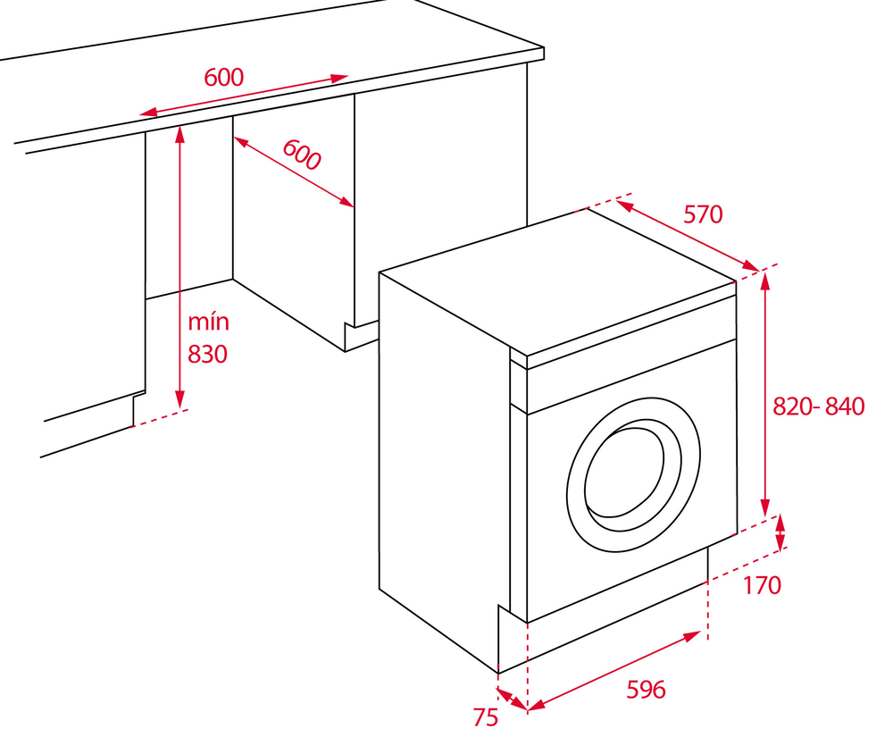 машина стиральная встраиваемая, 1400 об/мин, 8 кг
