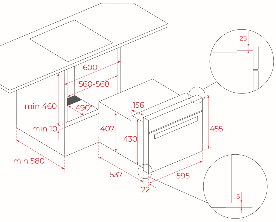 Ширина корпуса электроприбора. Особенно важно точно знать точную допустимую ширину для встраиваемой техники.