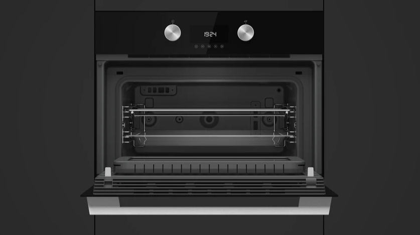 Предполагает наличие встроенного вентилятора, который обеспечивает равномерное запекание благодаря непрерывной циркуляции горячего воздуха.