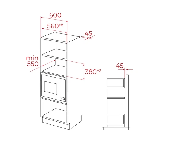 микроволновая печь встраиваемая, 20 л, 59,4х31,7х38,6 см, черный