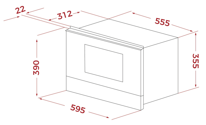 микроволновая печь встраиваемая, 22 л, 59,5х33,4х39 см, нержавеющая сталь