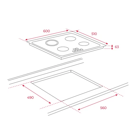 Характер огранки фаски на внешней стороне варочной панели. Металлические рамки предотвращают забивание монтажных швов крошками и пылью.