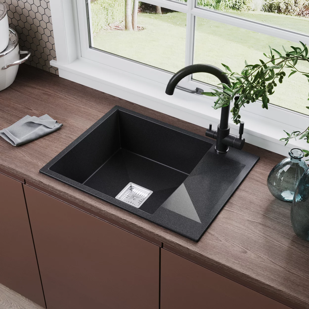 Расстояние от дна до верхней кромки чаши мойки. Оптимальная глубина — 15-18 см. Чем глубже мойка, тем меньше брызг попадет наружу.