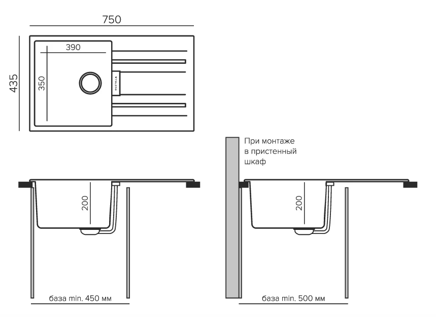 Определяет расположение крыла мойки. Выбирая вариант исполнения мойки, нужно учитывать особенности кухонного гарнитура.