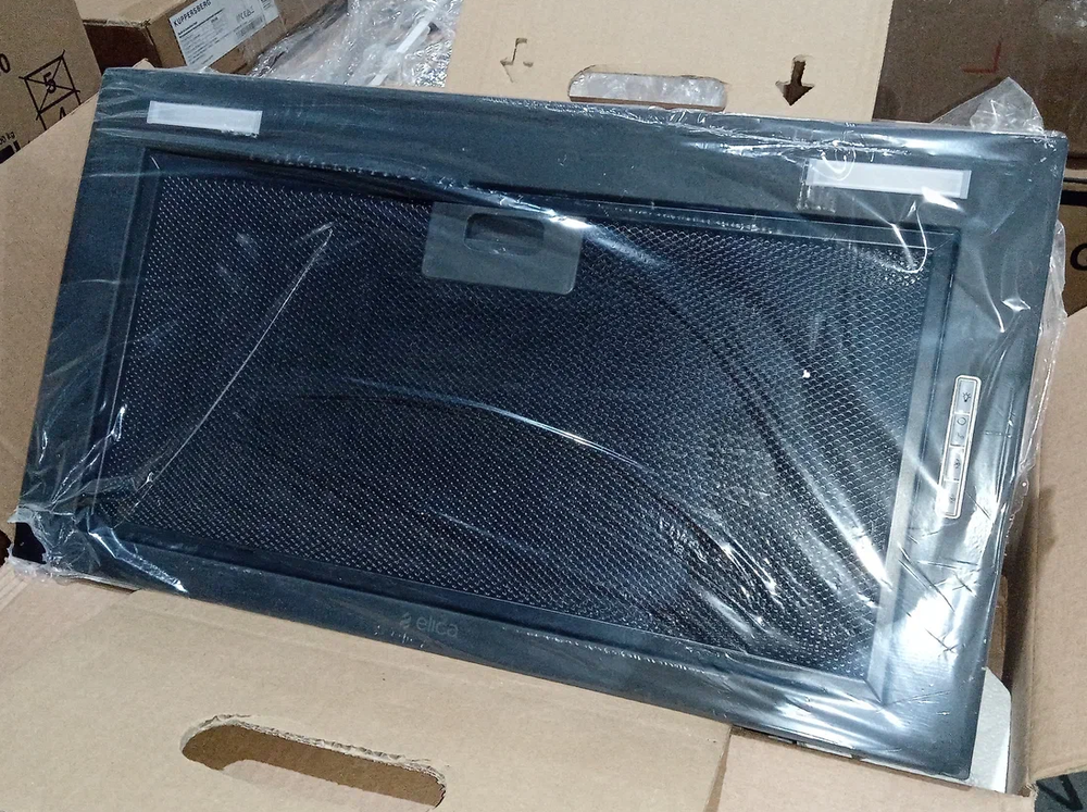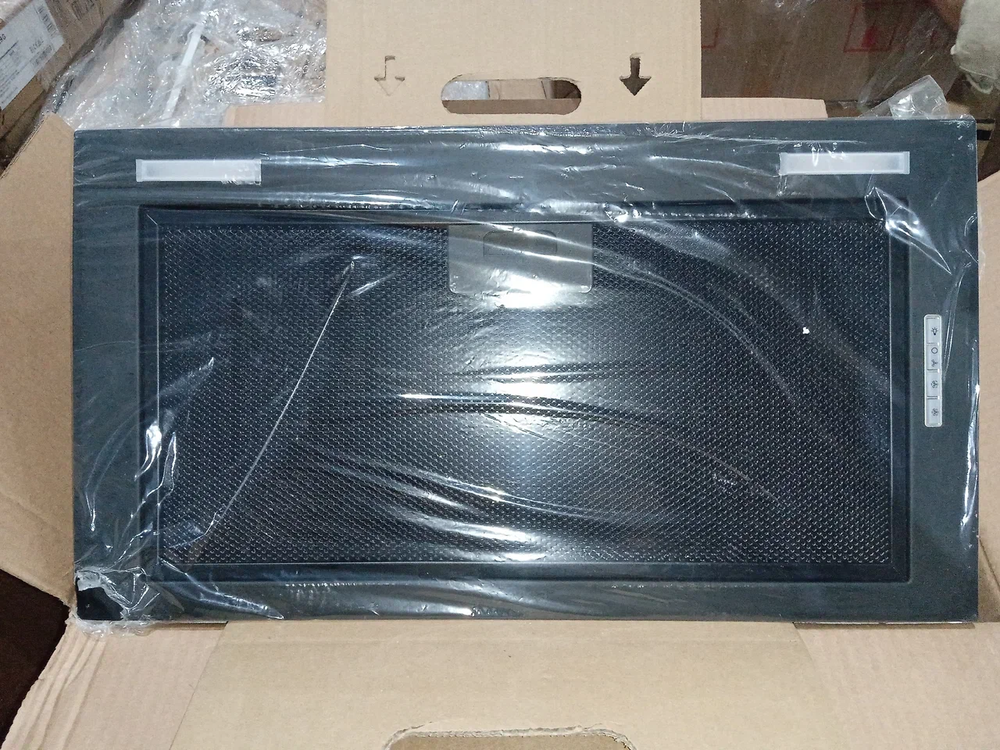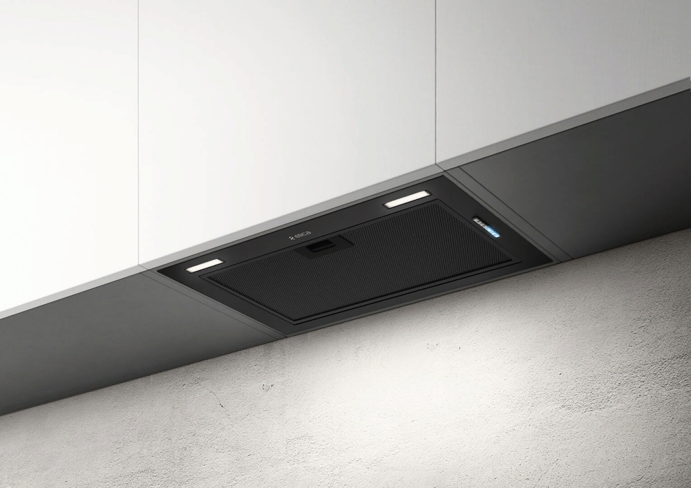 ДЕФЕКТ - на углу внешней панели незначительное замятие. Вытяжка встраиваемая в подвесной шкаф, 52 см, 1050 м3/ч, черный матовый