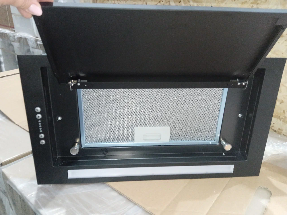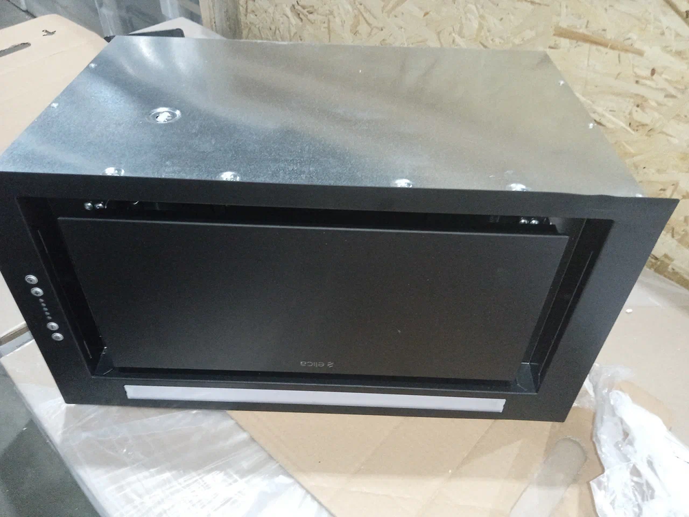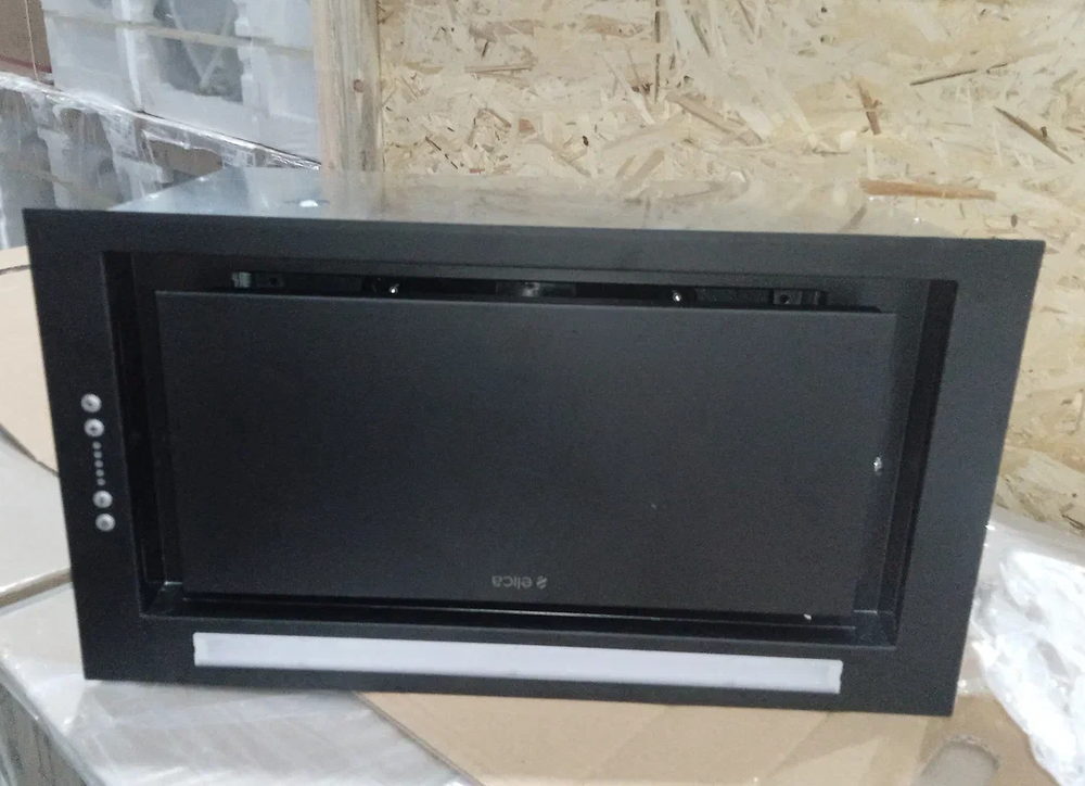 ДЕФЕКТ - небольшое замятие по краю рамки с дальней стороны, есть трещинка эмали. Вытяжка встраиваемая в подвесной шкаф, 52 см, 1200 м3/ч, черный с эффектом soft touch