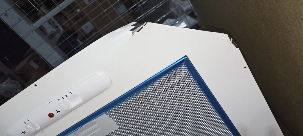 ДЕФЕКТ - замята нижняя кромка вытяжки, закроется без проблем обрамлением, незначительные царапины на корпусе, нет родной упаковки. Вытяжка классическая, 60 см, 650 м3/ч, бежевый, без обрамления