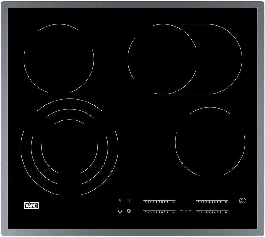 поверхность варочная стеклокерамическая независимая, 60 см, черный, рамка из нержавеющей стали