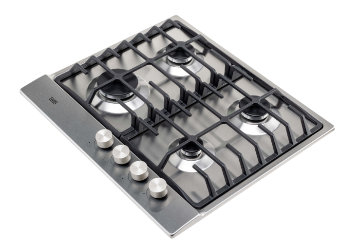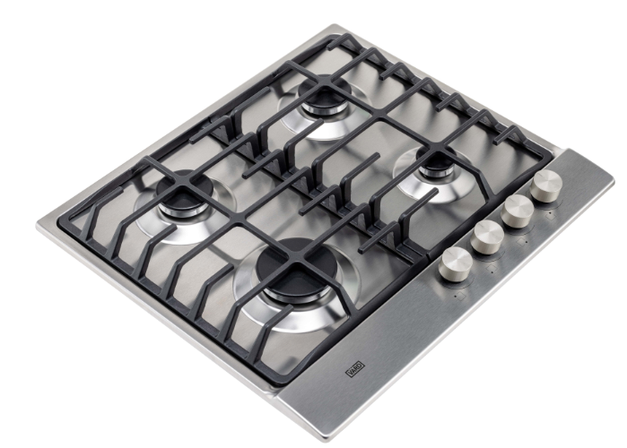 поверхность газовая независимая, 60 см, газ на металле, 4 конфорки, решетки чугунные, нержавеющая сталь
