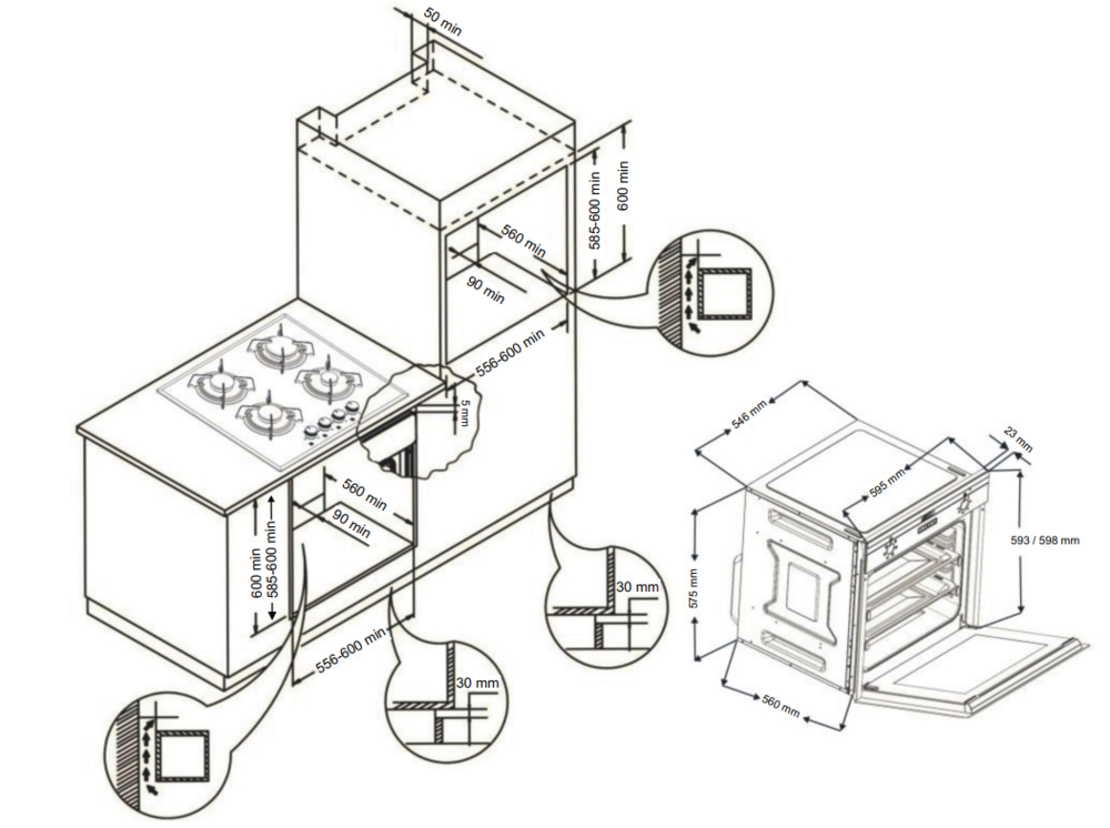 Ширина корпуса электроприбора. Особенно важно точно знать точную допустимую ширину для встраиваемой техники.