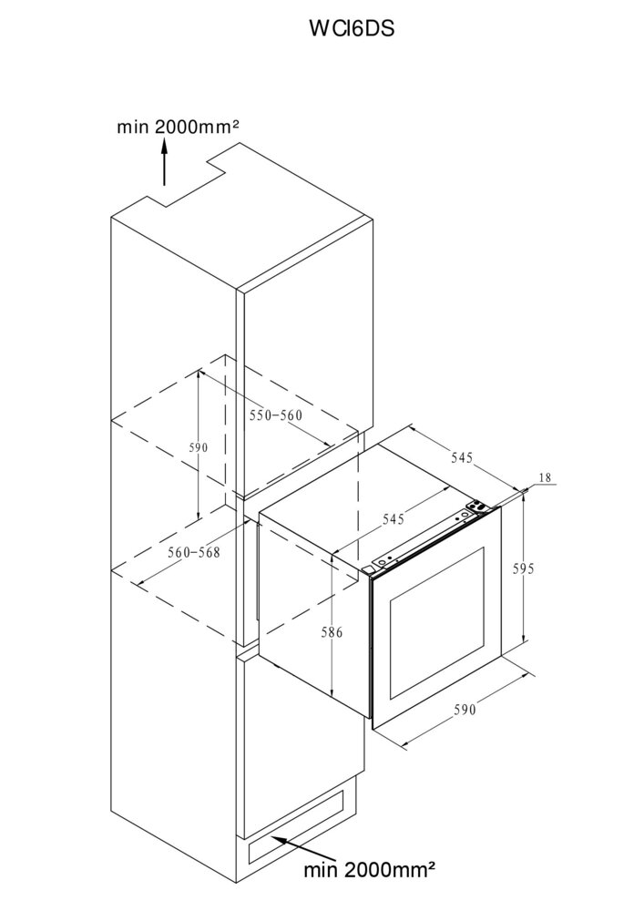винный шкаф встраиваемый, 85 л, 59,5x59x56,3 см, черный