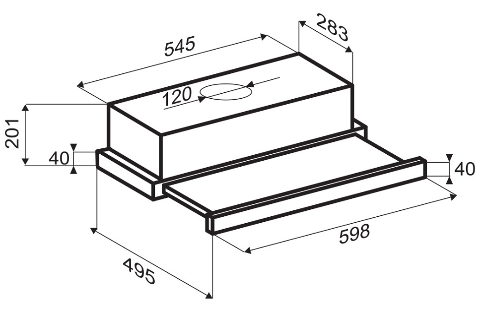 вытяжка встраиваемая телескопическая, 60 см, 450 м3/ч, черный