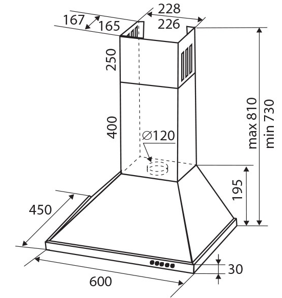 вытяжка пристенная, 60 см, 500 м3/ч, нержавеющая сталь
