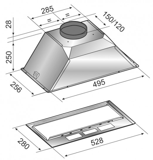 вытяжка встраиваемая в подвесной шкаф, 53 см, 1010 м3/час, нержавеющая сталь