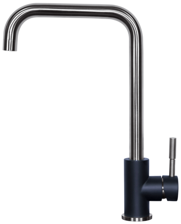 смеситель для кухни, нержавеющая сталь, высокий поворотный излив, черный базальт