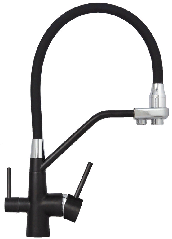 смеситель для кухни, латунь, дополнительный излив для фильтрованной воды, черный базальт