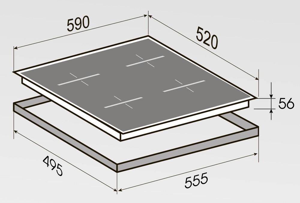 Характер огранки фаски на внешней стороне варочной панели. Металлические рамки предотвращают забивание монтажных швов крошками и пылью.