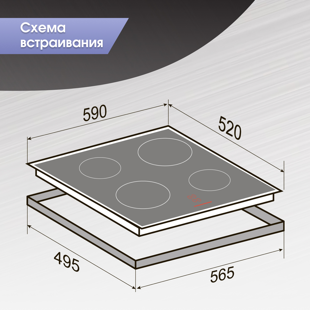 Расположение панели управления варочной поверхностью относительно конфорок. Если панель расположена сбоку, она будет справа.