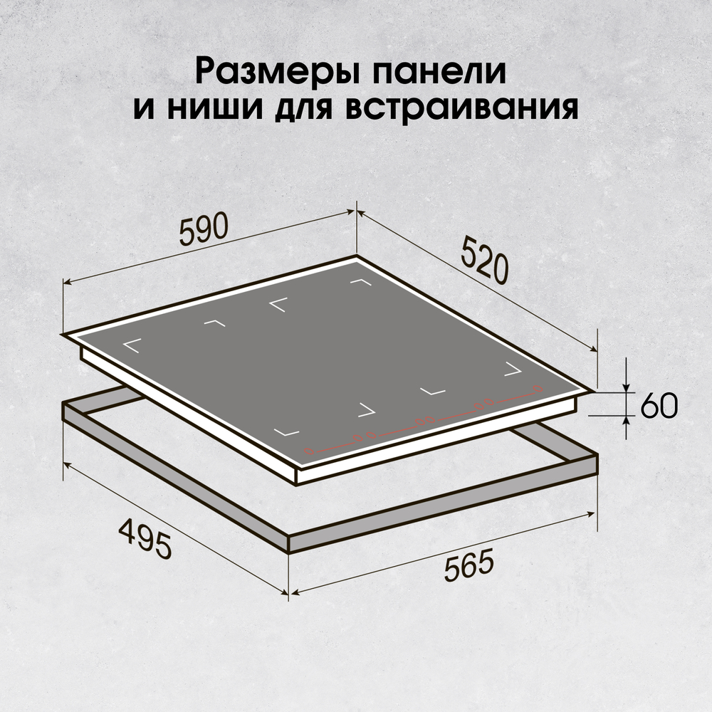 поверхность варочная стеклокерамическая индукционная, 60 см, черный, без рамки
