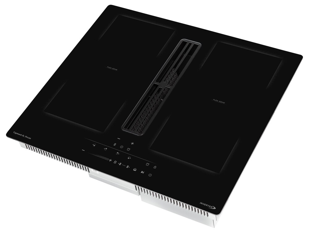 поверхность варочная стеклокерамическая индукционная с встроенной вытяжкой, 60 см, черный